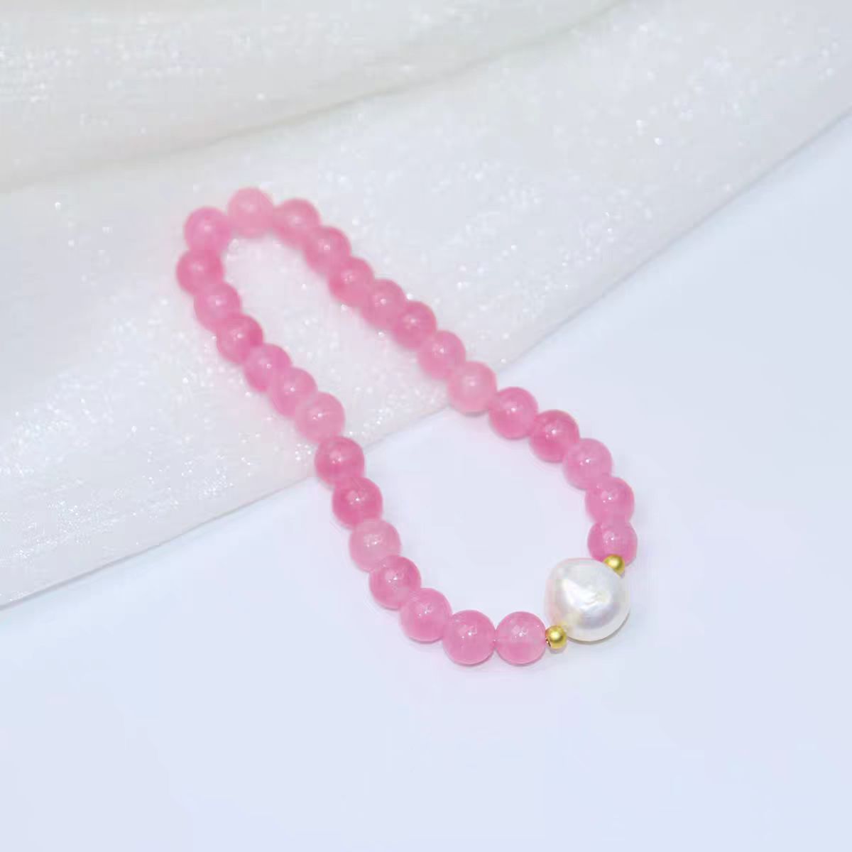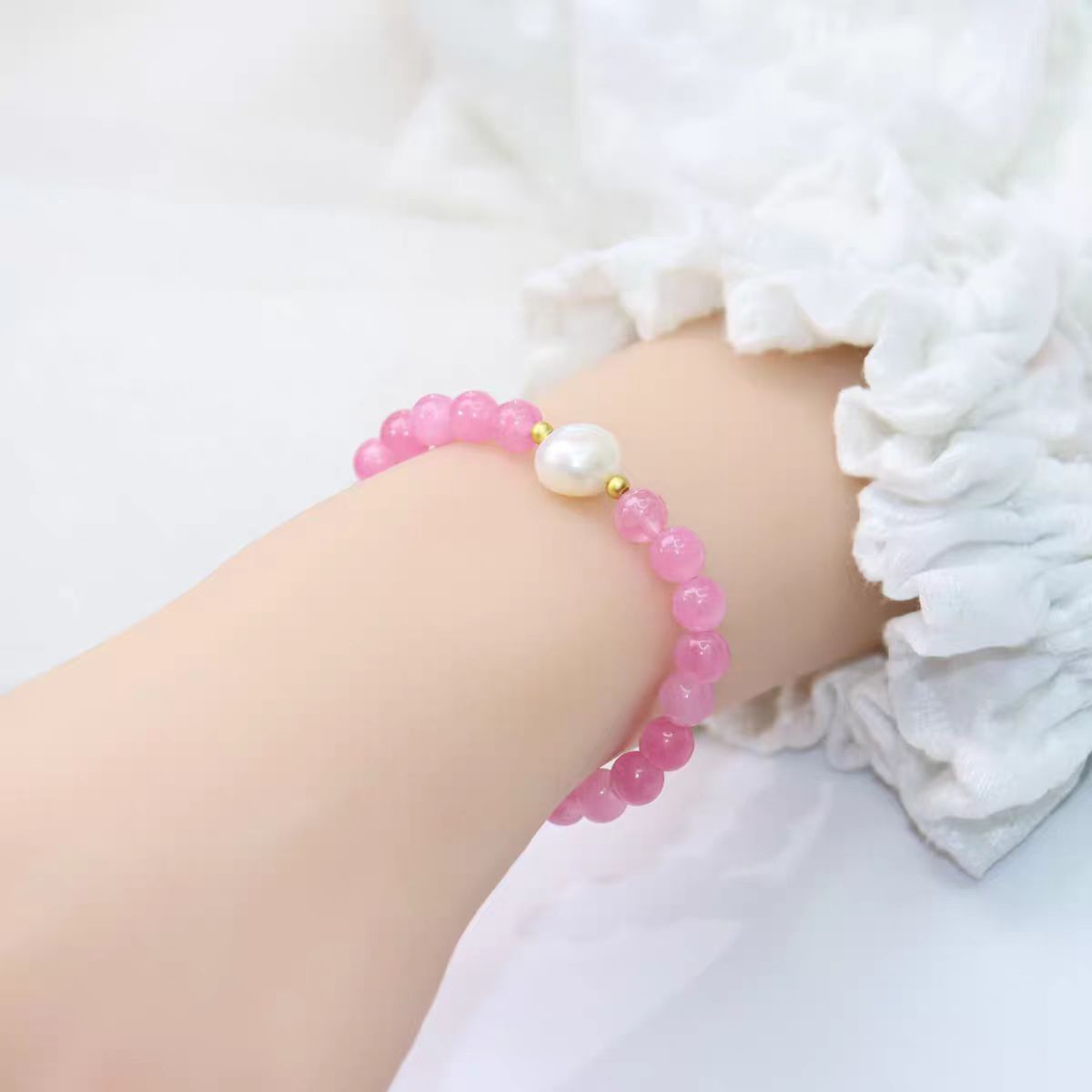 Charon natural pink peach blossom jade bracelet for women, light luxury pearl, niche design, bracelet gift for girlfriends