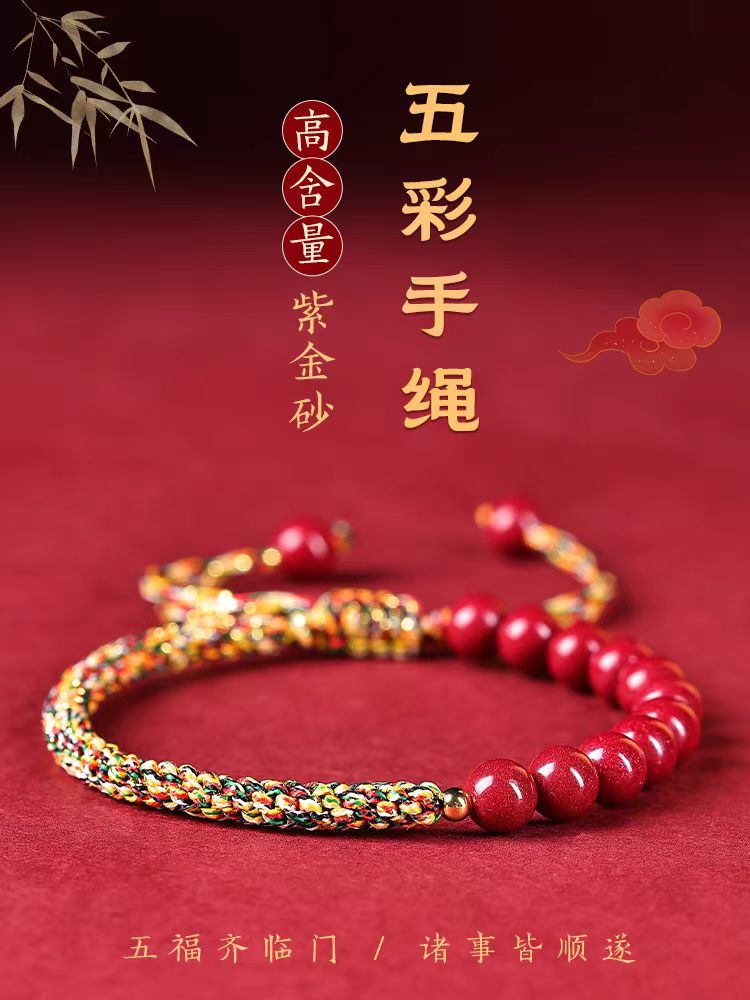 Loong Boat Festival multicolored rope hand woven hand rope men's purple gold authentic official flagship store women's vermilion bracelet