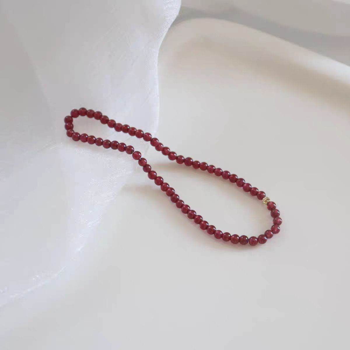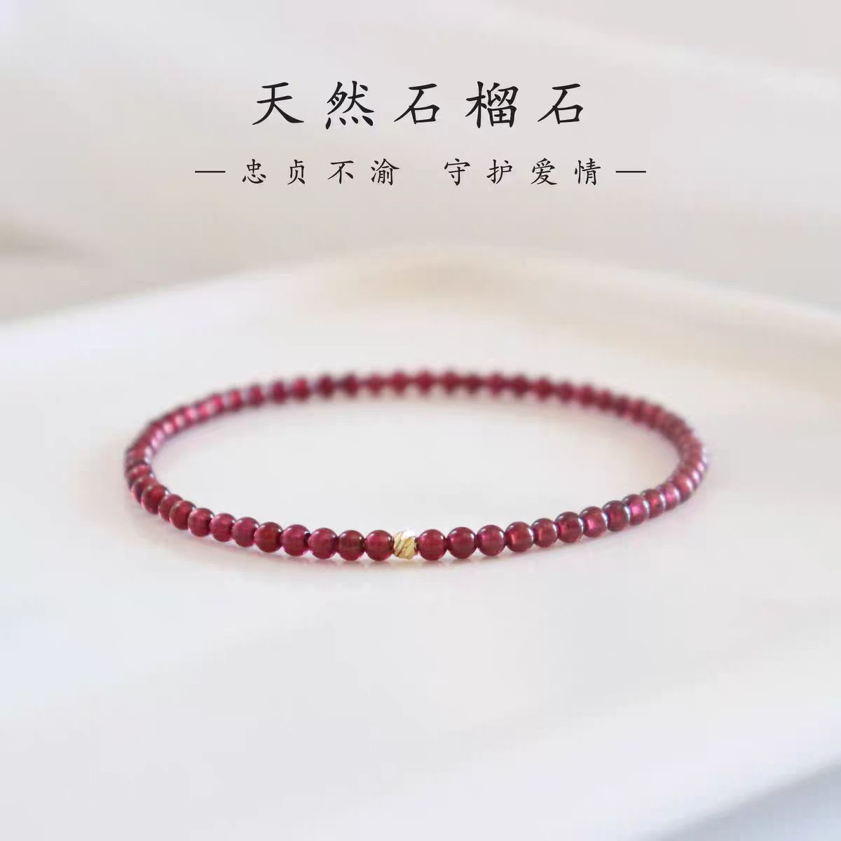 Natural garnet bracelet for women as a gift, niche accessory, extremely fine single circle bracelet, red pomegranate, good luck bead for students