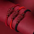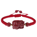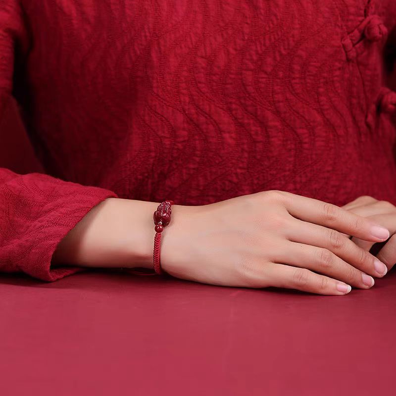 Natural genuine cinnabar lucky Pixiu bracelet, women's leather mound red rope hand woven, lucky couple gift for the zodiac year