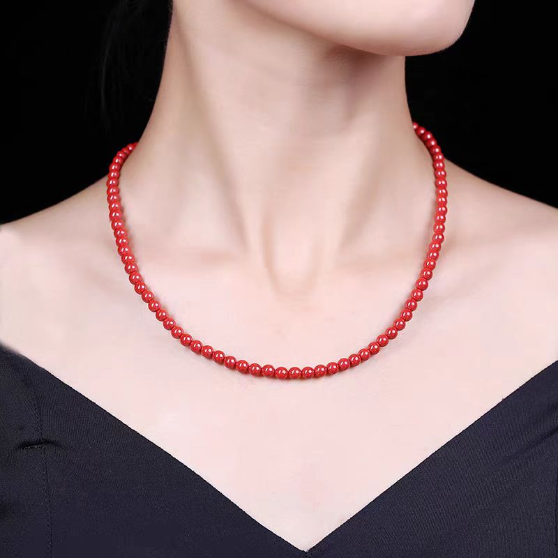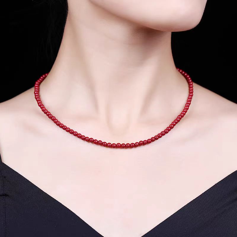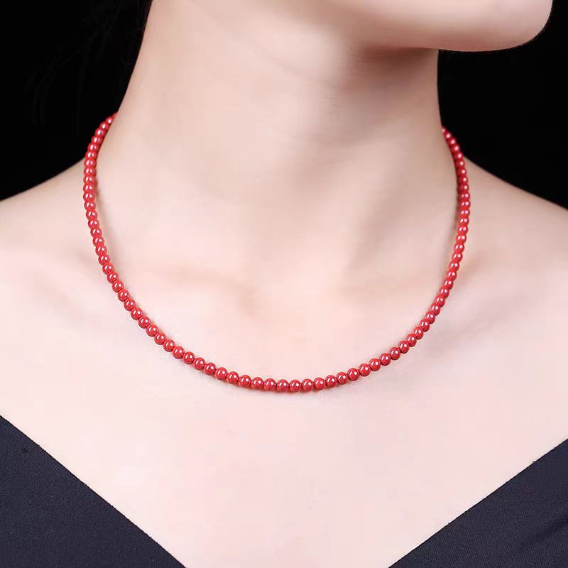 Natural mineral cinnabar collarbone chain, zodiac year female necklace, high content purple gold sand round bead neck chain, gift for mother