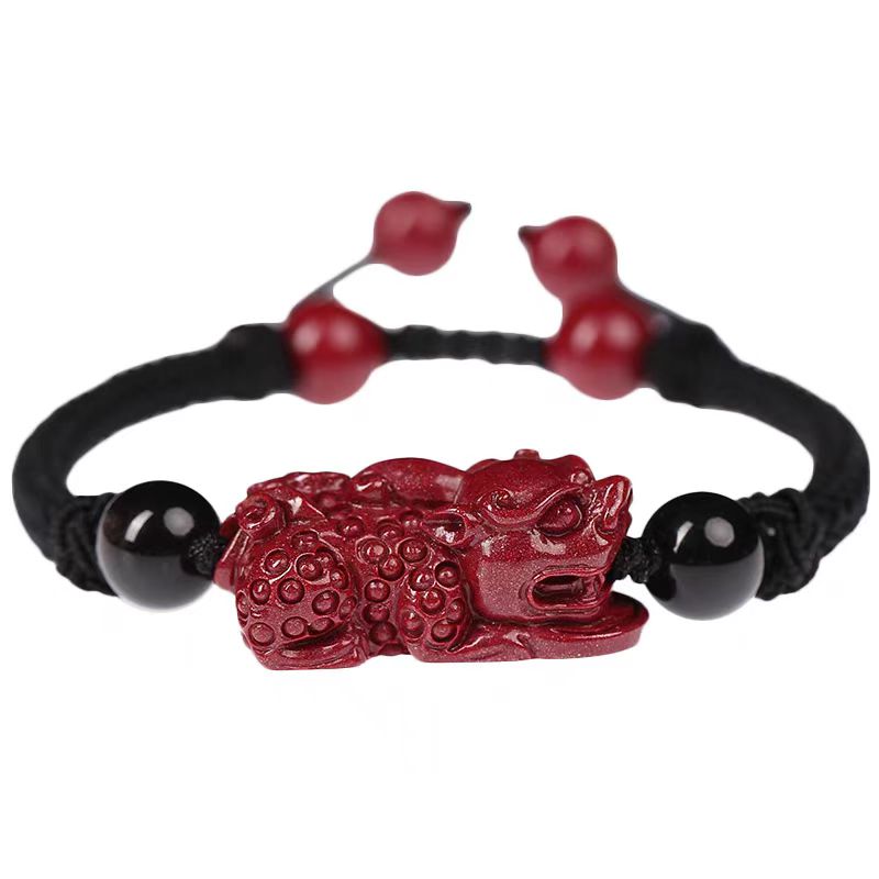 Natural Mineral cinnabar Pixiu Obsidian Bracelet for Men and Women