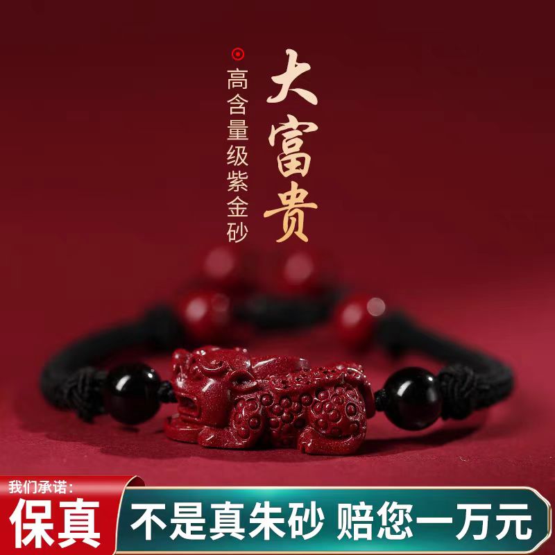 Natural mineral cinnabar pixiu obsidian bracelet for men and women, handmade woven black rope for the Year of the Tiger, niche couple gift