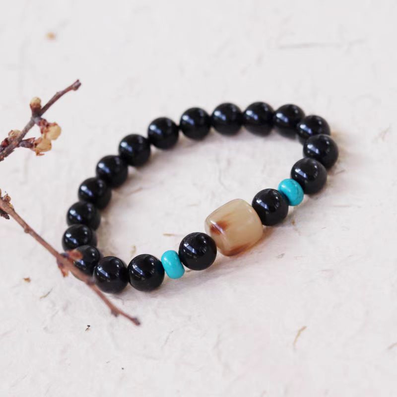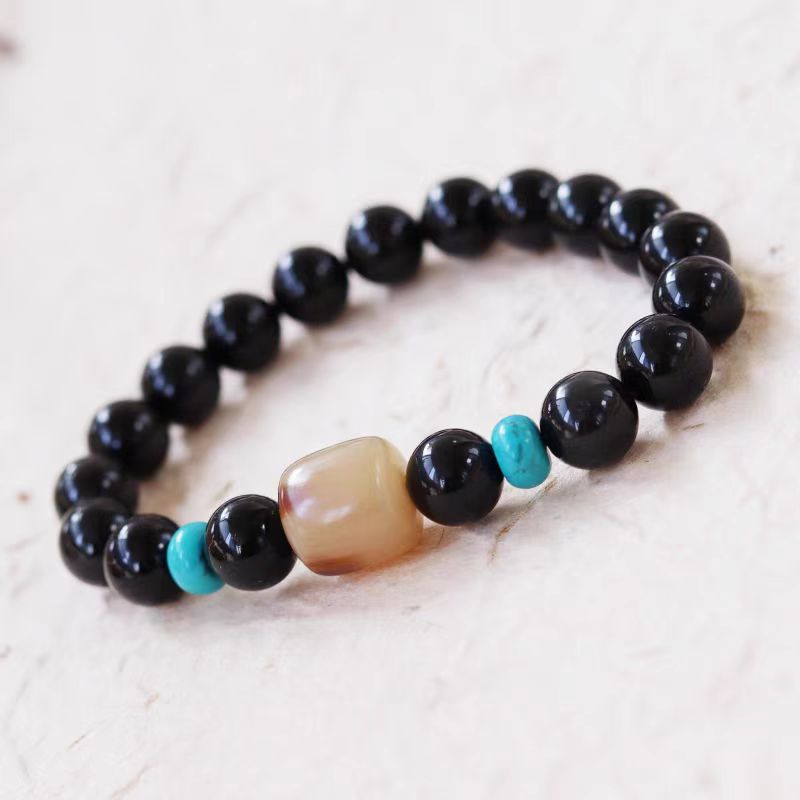 Original Natural Obsidian Bracelet Hand String for Men and Women Single Circle Black Obsidian Black Beads Authentic Couple