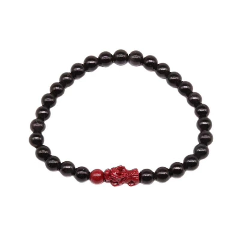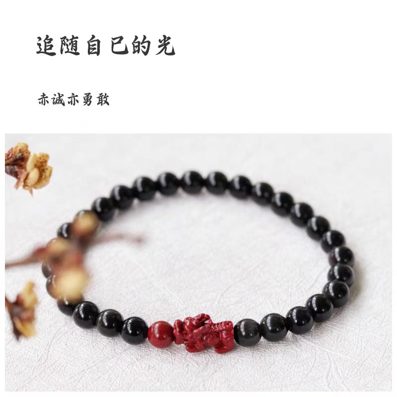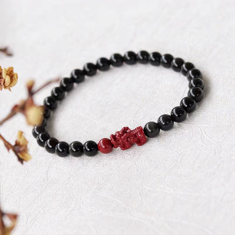 Obsidian beads, cinnabar Pixiu, natural obsidian bracelet