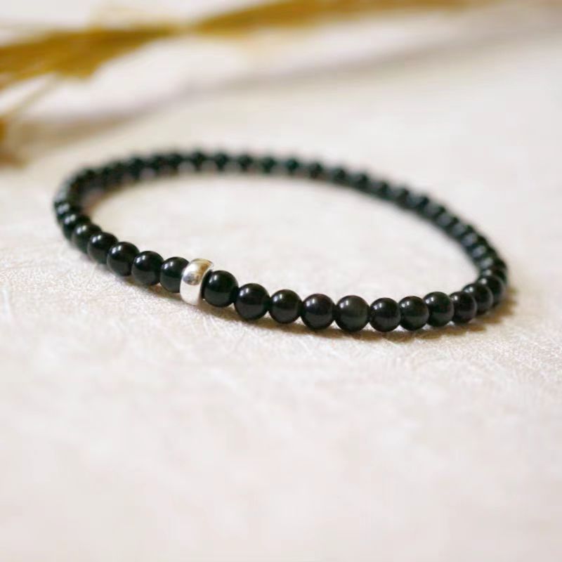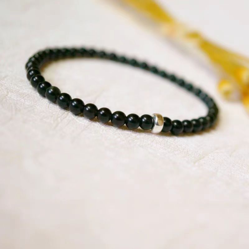 Obsidian bracelet, women's slim bracelet, women's style, extremely slim and simple girl's bracelet, white crystal and cinnabar