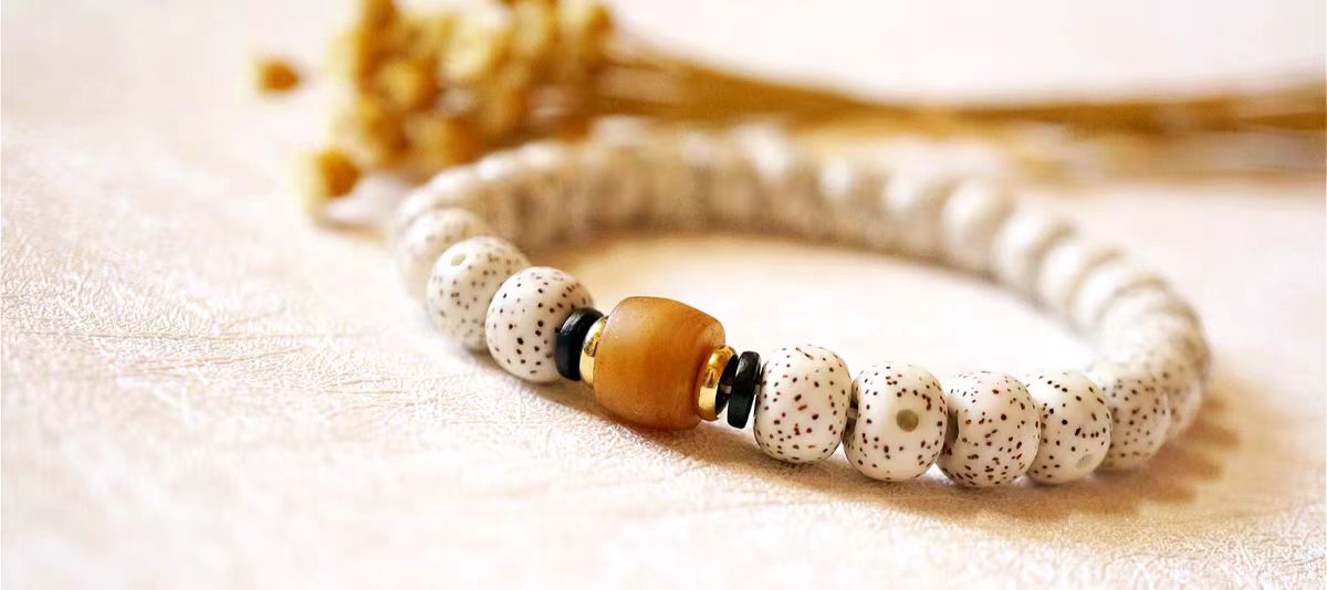 Starry Moon Bodhi Bracelet Holding White Jade Bodhi Root